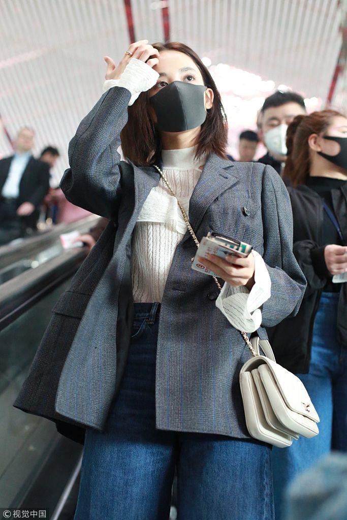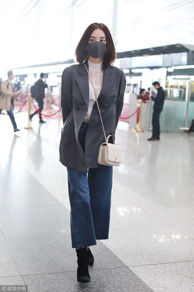娜扎现身机场不当小仙女 穿“爸爸西装”配牛仔裤帅得一塌糊涂