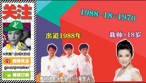 但实际上,上图的爆料也不准,据“关八”深扒,李冰冰的年龄大概至少是1970年出生。