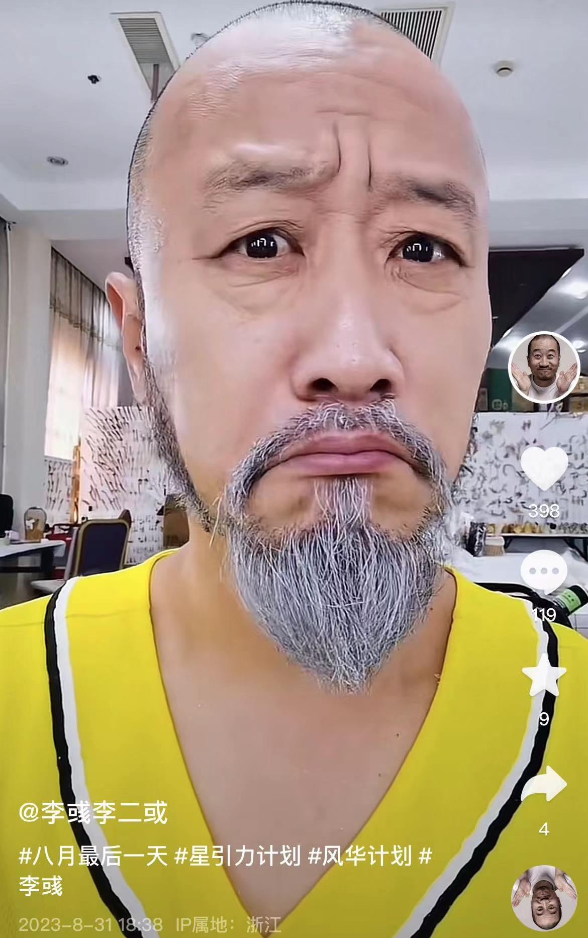 然而,尽管李彧步入演艺圈,他的口碑却远不如李保田老师。他在社交媒体上频繁发布一些放飞自我的画面。最新的一则视频中,他剃光了头发,不仅挤眉弄眼,胡须也已经花白,显得苍老憔悴。