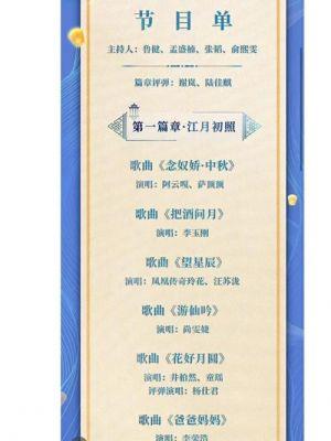中秋佳节,是我国传统的重要节日,象征着团圆和和谐。在这个特殊的日子里,中央电视台会举办一年一度的中秋晚会,为观众带来精彩的文艺表演。近日,备受关注的2023年央视中秋晚会节目单终于揭晓,然而,令人遗憾的是,部分原本预计的表演节目却因为种种原因无法如期亮相。