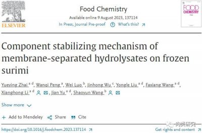 - 汪少芸教授、李向红教授:膜分离水解物对冷冻鱼糜组分的稳定机理 鲢鱼水解物的超滤分级是一种很有前途的基于分子质量分离肽的方法。该工艺允许工业生产大量纯化的肽级分,特别...