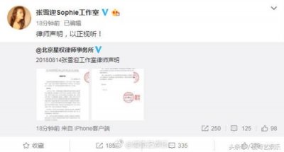 - 张雪迎方发声明(张雪迎方就插足恋情传闻发声明) 今日,张雪迎工作室转发北京星权律师事务所的律师声明,表示将对近日诋毁张雪迎人格的行为采取“零容忍”态度,对相关违法行...