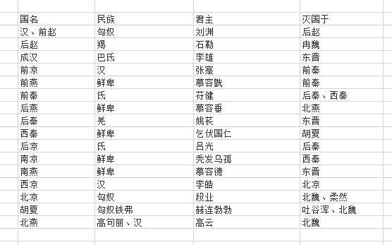 十六国详细如下图