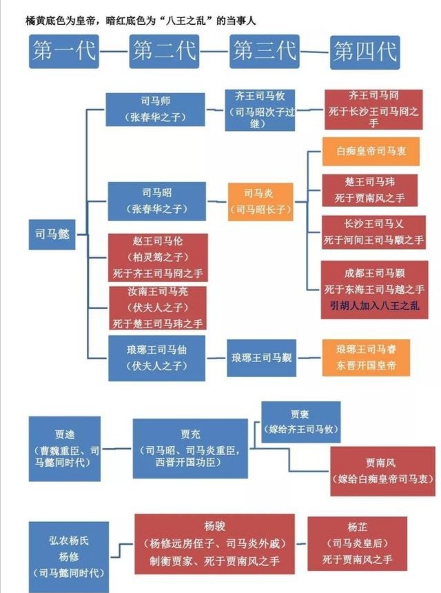 八王有:汝南王-司马亮、楚王-司马玮、赵王-司马伦、齐王-司马冏、河间王-司马颙、成都王-司马颖、长沙王-司马乂、东海王-司马越。