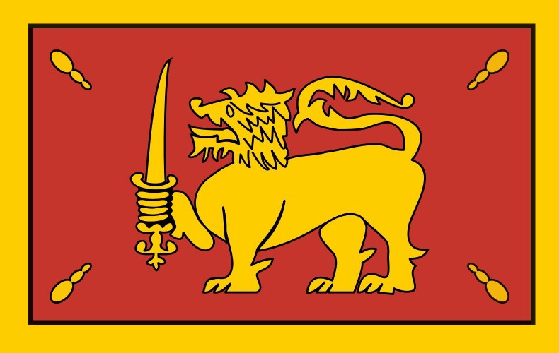 国旗俗称“狮子旗”,由一只握有宝剑、向前行走状的金色狮子为主图案。现行旗帜启用于1972年。旗面四周的黄色边框和框内靠左侧的黄色分割线,将整个旗面划分为左右结构的框架。左边框内是绿色和橙色的两个竖长方形;右侧为红褐色长方形,中间是一头紧握宝剑的黄色狮子,长方形的四角各有一片菩提树叶。咖啡色代表占斯里兰卡多数人口的僧伽罗族,橙、绿色代表泰米尔族和穆斯林;黄色边框象征人民追求光明和幸福。菩提树叶表示僧伽罗族对佛教的信仰,而其形状又和斯里兰卡国土轮廓相似;狮子图案标志着该国的古称“狮子国”,也象征斯里兰卡人民的刚强和勇敢,尾部八个凸起象征八正道、在它的右前爪上握有一把剑,代表斯里兰卡民众誓死捍卫国家的决心与意志。