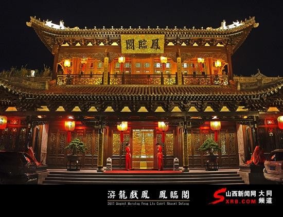 凤临阁酒楼坐落于千年古刹华严寺东侧,雄立于千年历史文脉的鼓楼东西街文化轴西端,主楼总建筑面积6000平方米,建筑飞檐斗拱、雕梁画栋,内部曲栏回廊、移步异景,汇聚了中国古代建筑的诸多样式和风格,同时精选了大同历史名胜景点和故事传说,精美绝伦的雕刻和雕塑展现在各个建筑和环境内,将历史文化、建筑文化、旅游文化、民间民俗文化与饮食文化完美融合为一体,形成独具风貌的“凤临阁文化”,与气韵典雅的古城风貌交映生辉。