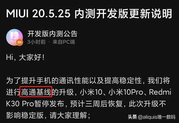 实际上,公告中提到的基线指高通给厂商的基础软件。