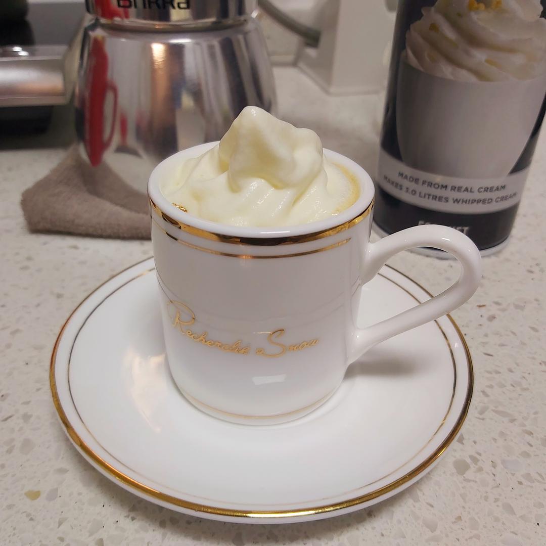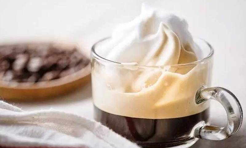 奶油要提前打发,至少要3分钟,搅拌的过程中,如果感觉甜味不重,还可以添加适量白砂糖,夏天制作康宝蓝时,奶油一定要提前冷藏一天,这样打发的成功率更高,一杯康宝蓝,底部是浓缩咖啡,上面则是细腻的鲜奶油。