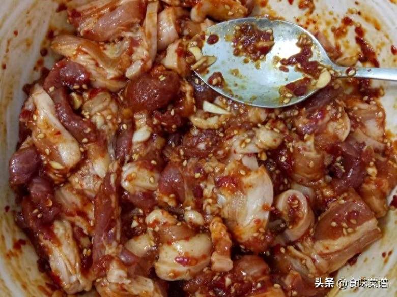 2、加入生抽、辣椒粉、蚝油、盐、黑胡椒粉和蒜末,抓匀腌制半小时。这样可以使五花肉充分吸收调料的味道。