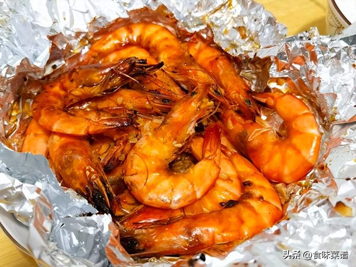 4、当空气炸锅的“滴答”声停止时,就意味着美食已经准备好了。打开锡纸,你会看到一只只金黄酥脆的大虾,香气扑鼻。
