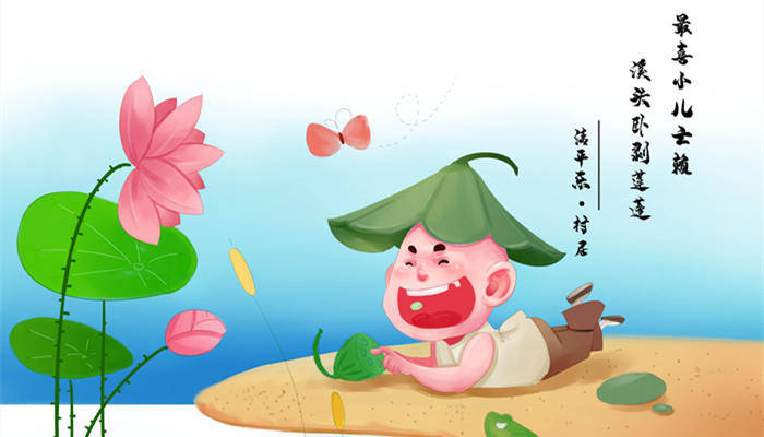 大儿锄豆溪东,中儿正织鸡笼。最喜小儿亡赖,溪头卧剥莲蓬。