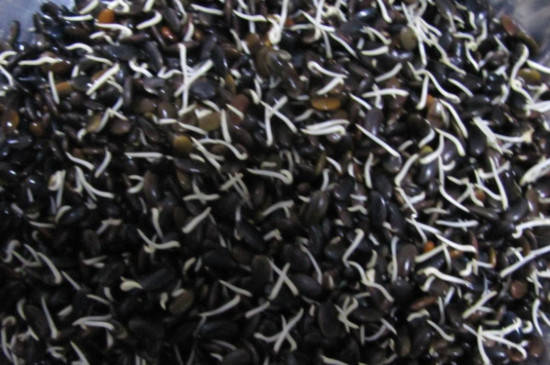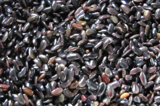 挑选新鲜的小黑豆,要观察小黑豆的颗粒是否饱满、色泽是否均匀,将新鲜的小黑豆慢慢挑拣出来,因为用新鲜小黑豆发芽的豆子出芽率高。