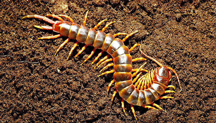 蜈蚣与蛇、蝎、壁虎、蟾蜍并称“五毒”,并位居五毒首位。蜈蚣第一对脚呈钩状,锐利,钩端有毒腺口,一般称为腭牙、牙爪或毒肢等,能排出毒汁。被蜈蚣咬伤后,其毒腺分泌出大量毒液,顺腭牙的毒腺口注入被咬者皮下而致中毒,一般长1.5毫米到34毫米之间。