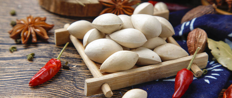 3.银杏果带壳炒炸,制成椒盐白果一类的食品。