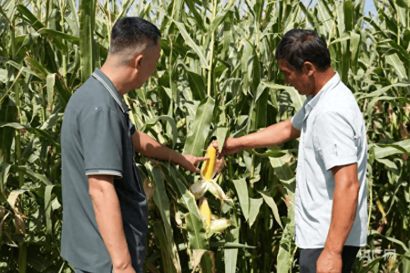 农户正在查看玉米长势 (央广网发 库尔勒市委宣传部供图)