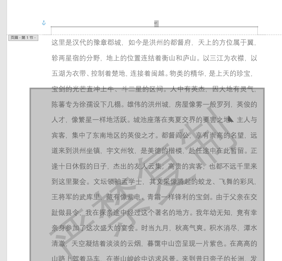 会发现这些水印是存在于页眉里的,这种情况下可以选中水印按delete键删除