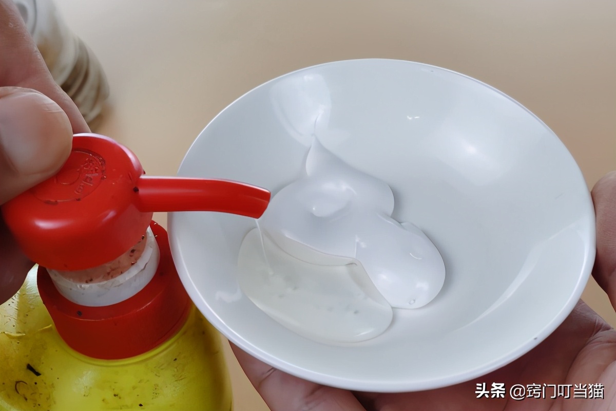 第一步:首先准备一个小容器,在容器里面挤入一段牙膏,牙膏有很强的去污增白作用,里面含有研磨剂,再挤入一些洗洁精,洗洁精也有很强的去油能力,鞋子上的污垢泥土都能轻松洗干净。