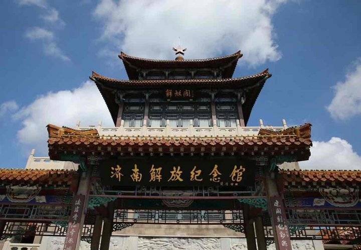 解放阁是“泉城”济南的著名景点,位于原济南旧城城墙东南角,黑虎泉东侧,隔护城河与黑虎泉相望。阁址为解放战争济南战役期间,中国人民解放军于1948年9月24日攻克济南时的攻城突破口处。后旧城城墙因城市建设而拆除时,济南人民特意在这里的旧城址上,建起了巍峨壮观的解放阁,以纪念济南解放。1965年建成10米高的石砌台基,后因“文化大革命”停建。1985年于台上建阁,1986年9月24日落成。