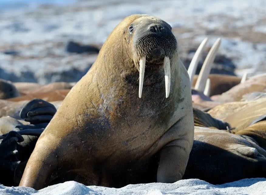 海象,有一根很大的象牙,很有辨识度。