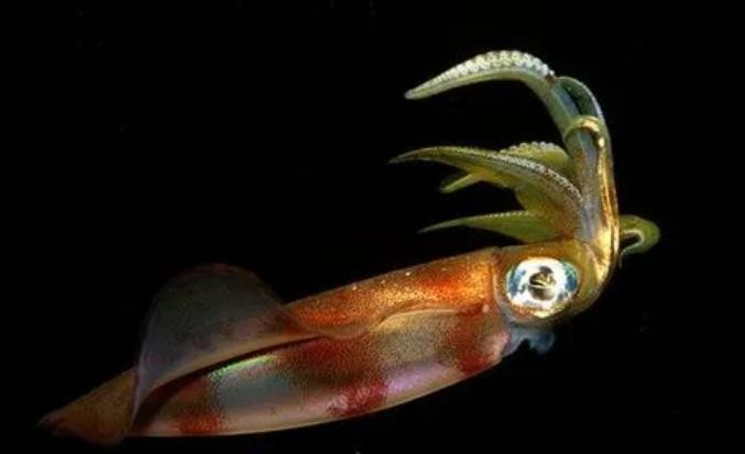 真正的乌贼是这个黑短扁的身体下有十条须。