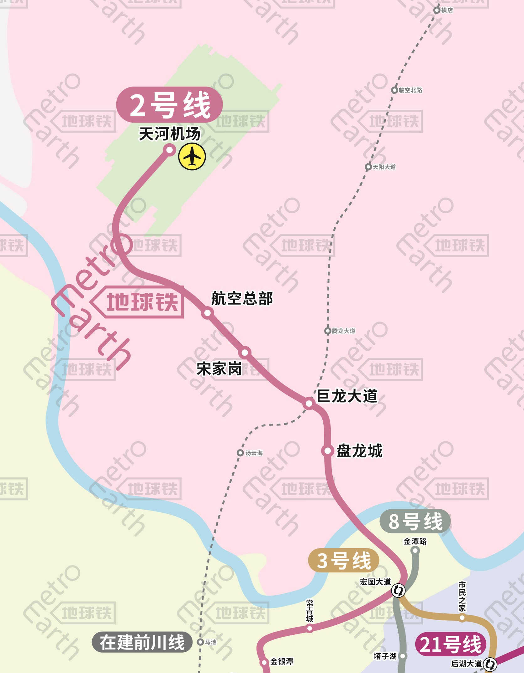 2016年12月28日开通运营的2号线二期工程,满足了市民前往武汉天河国际机场的便捷交通需求。
