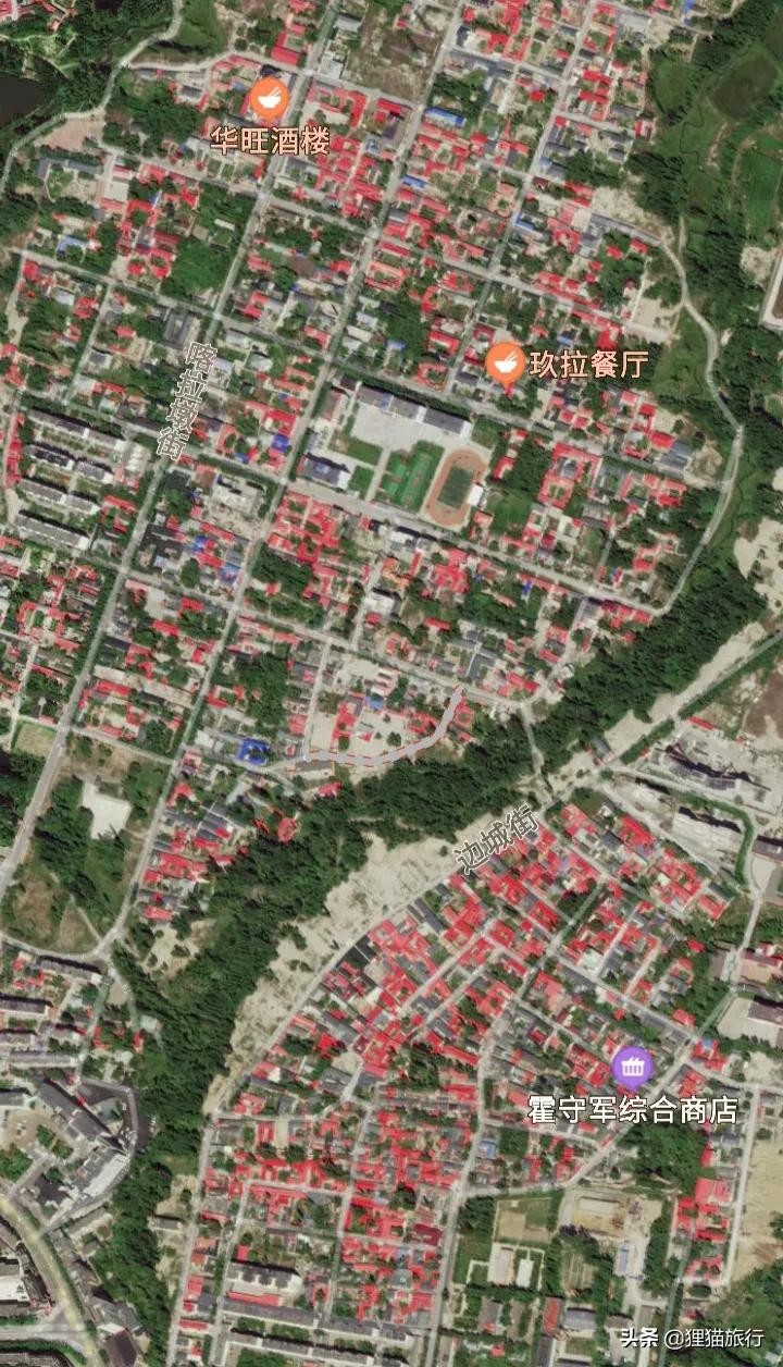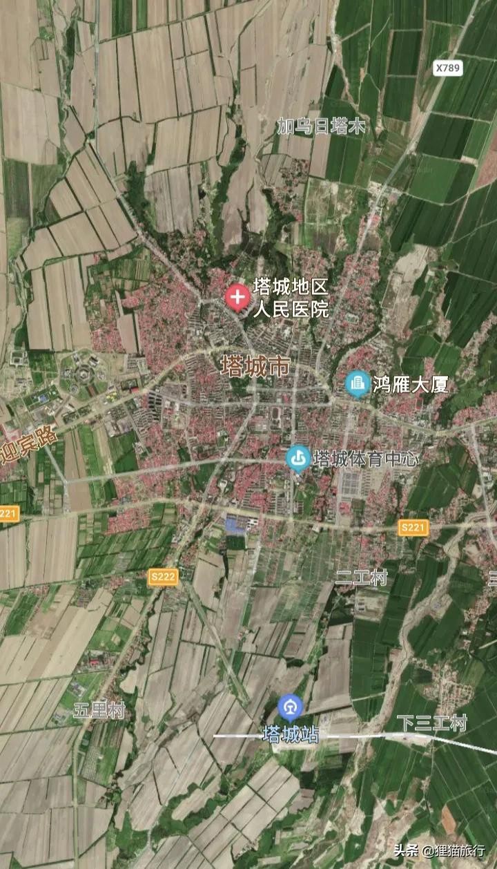 新疆塔城市地形图,市区有大片红色的屋顶