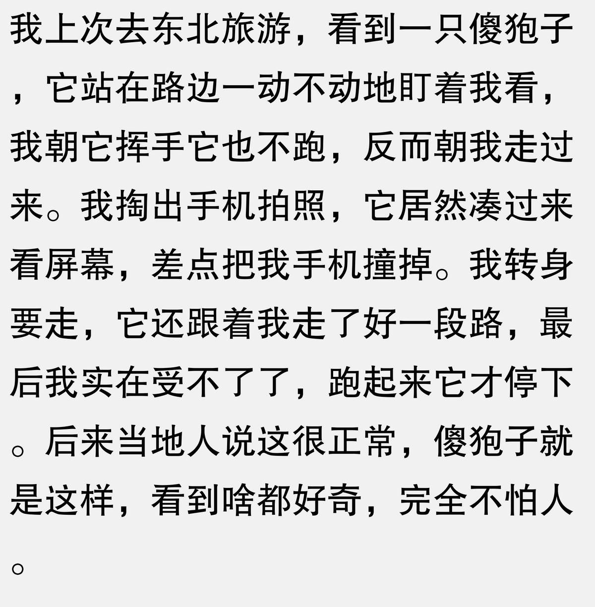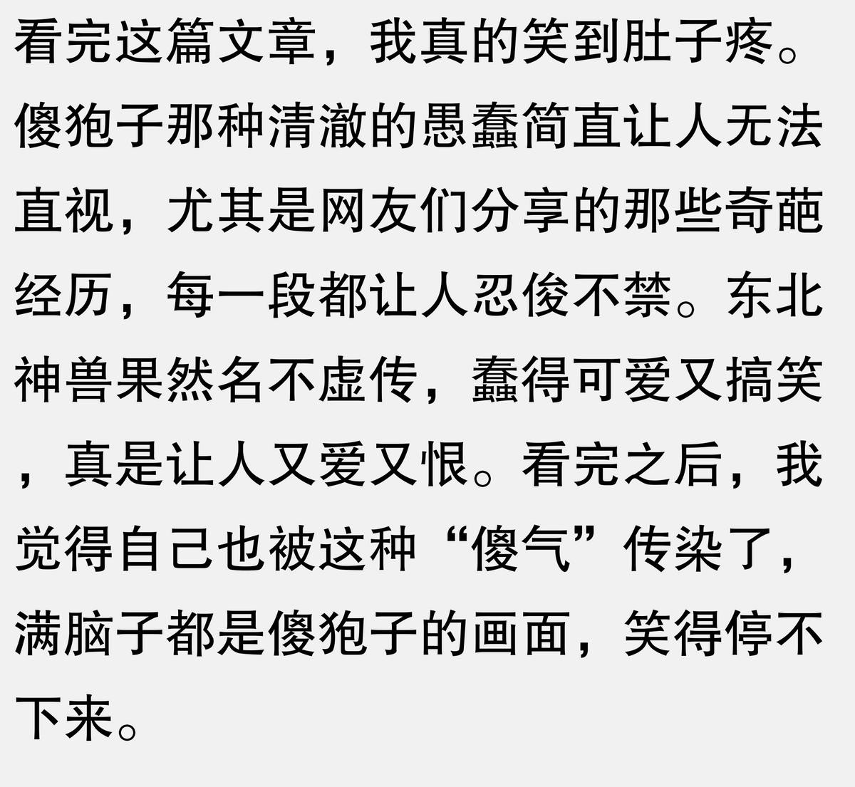 我表弟就是东北林业大学毕业的,他专门研究傻狍子,但我是本地猎户,从小在山上打猎,抓过的傻狍子没有一千也有八百。有一次我表弟跟我争傻狍子到底有多傻,我当场抓了一只给他看,那狍子看见我俩居然停下来发呆,我表弟说这证明它好奇,我说这证明它傻,我俩争了半天,最后那狍子自己跑了,我俩谁也没说服谁。