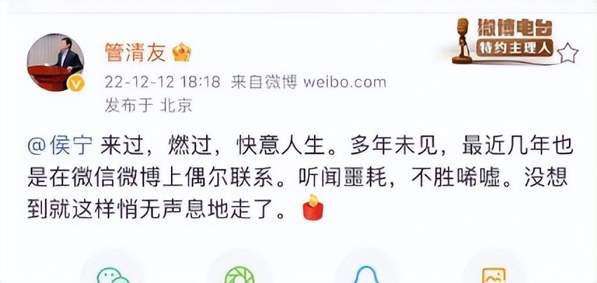 12月12日,有消息称著名大V、前财经记者侯宁去世。券商中国记者多方求证,核实了这一消息。