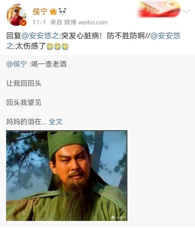 而就在不久前的11月1日,他曾发布歌词,悼念因心梗去世的演员陆树铭(关羽的扮演者)。