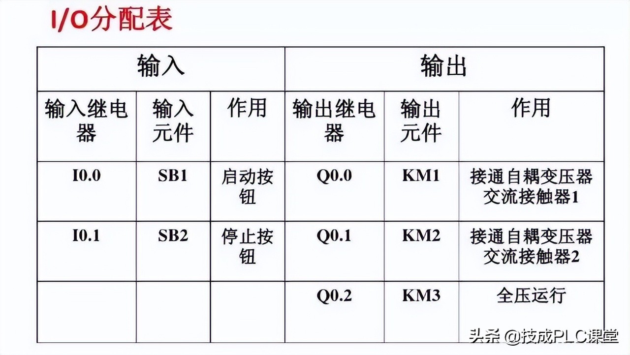 八、自耦变压器降压启动控制系统(I/O分配表、PLC接线图、梯形图程序)