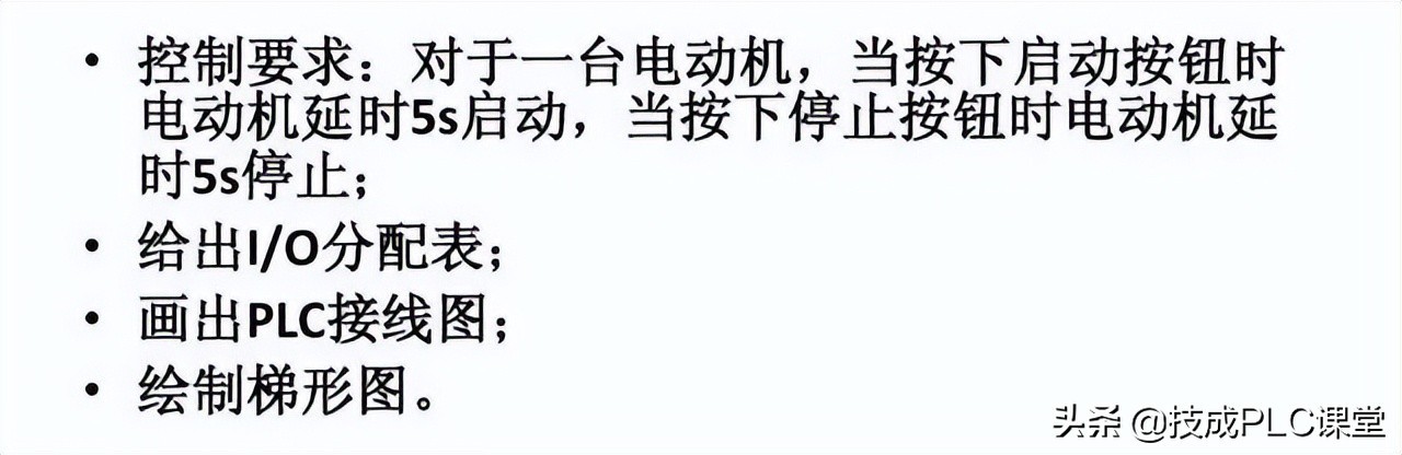 四、电动机延时启动、停止控制(I/O分配表、PLC接线图、梯形图程序)