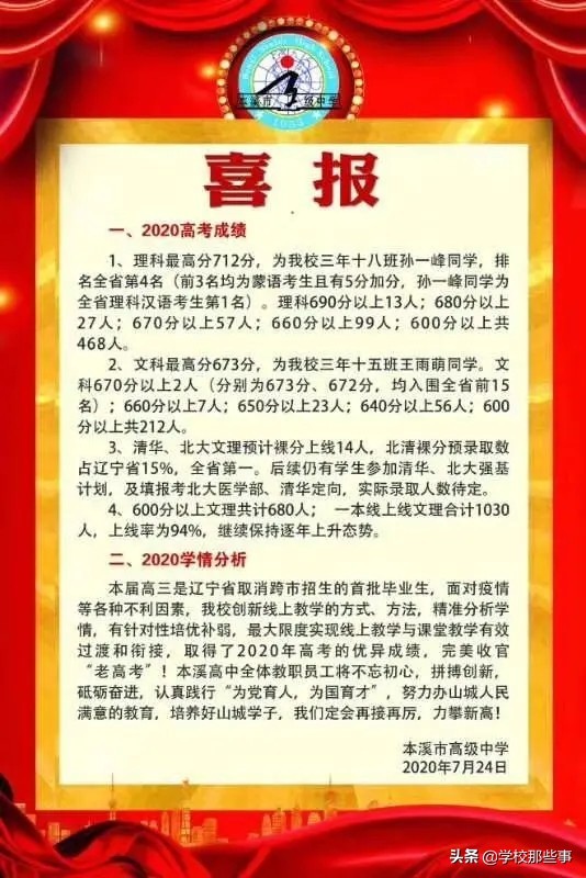 2018,辽宁喀左一中理科考生孙佳琦以711分好成绩,勇夺辽宁省理科状元!