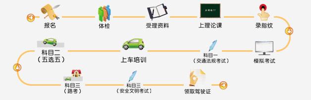 2、学车详细流程如下第一步报名 报名条件1870周岁,两眼裸视力或者矫正视力达到对数视力表49以上,无赤绿色盲,听力障碍者须佩戴助听器本地户口外地户口凭居住证或临时居住证,即暂住证可报名第二步体检 凭有效。