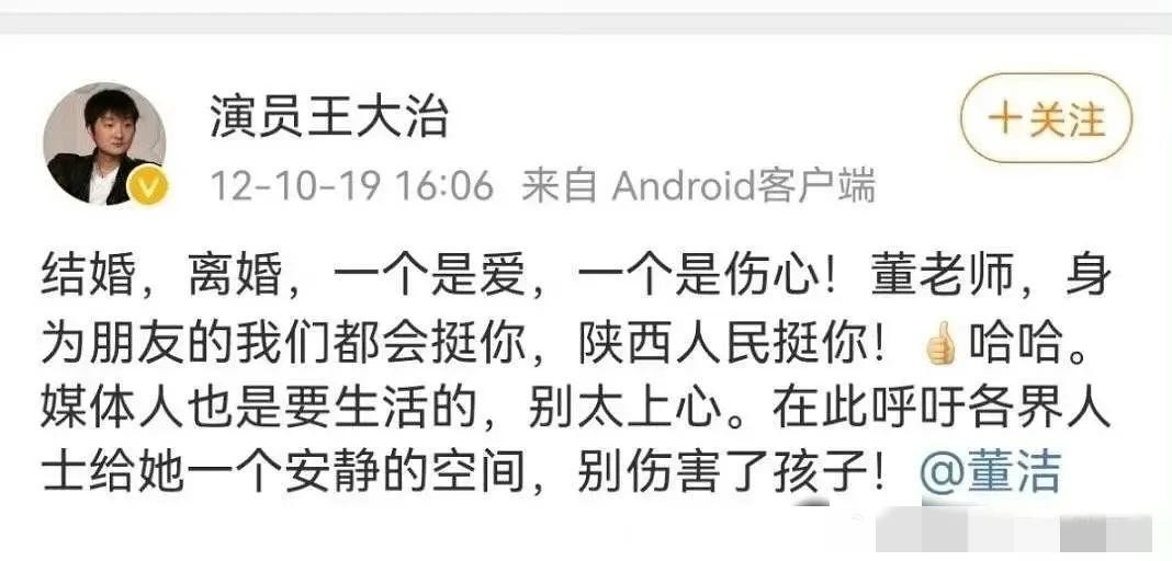 董洁离婚,王大治当时发的微博真的很好笑