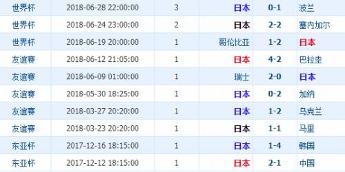 日本1胜1平1负取得4分小组赛第二晋级16强,进4球失4球。