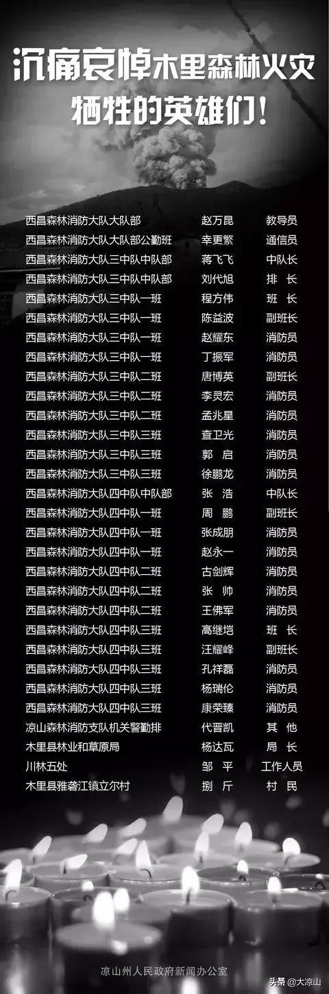 今天,凉山州人民政府新闻办公室发布"3.30"木里森林火灾英勇牺牲的英雄名单: