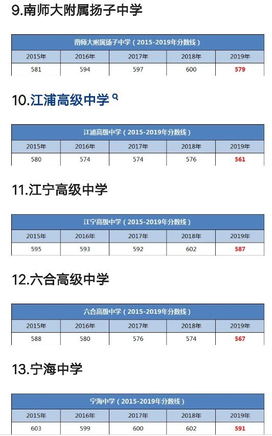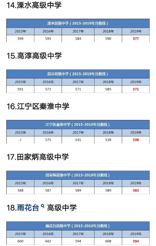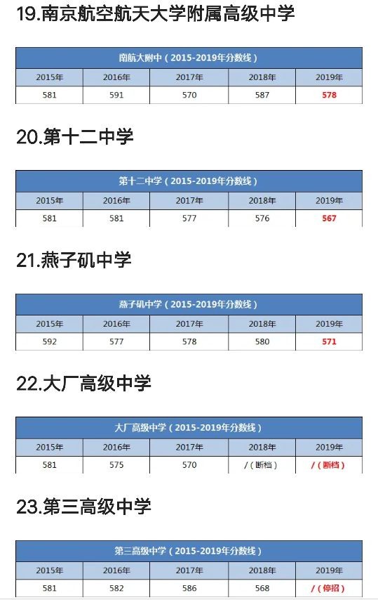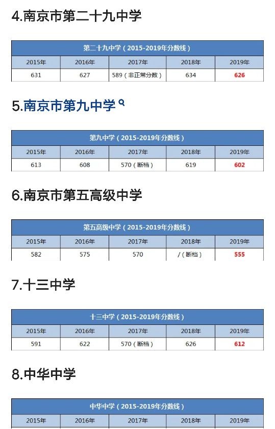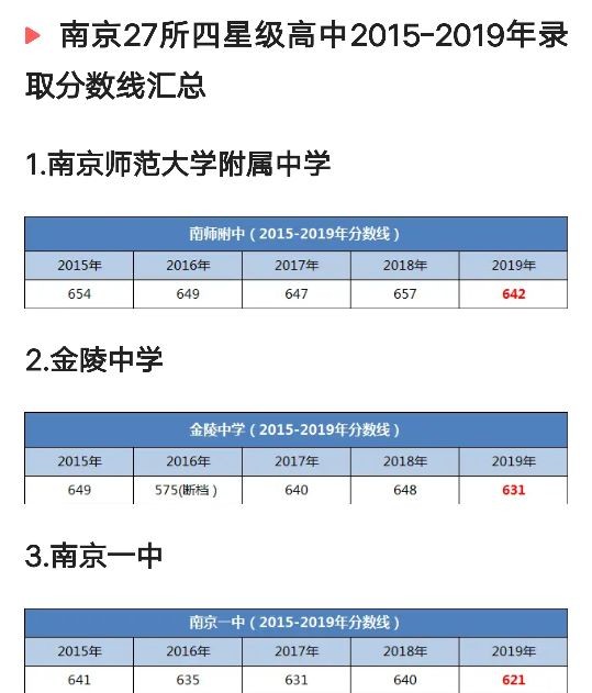 南京市27所四星级高中2015-2019年录取分数线汇总