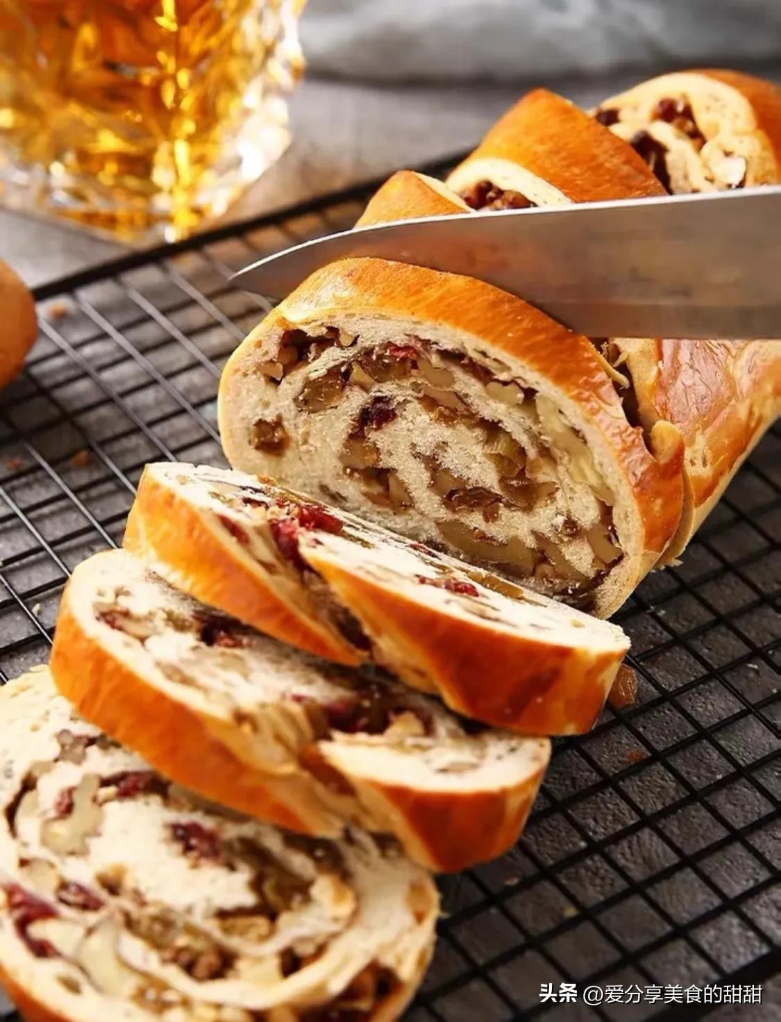 油亮焦酥的外皮、紧实绵密的内瓤,咬上一口,没有法棍干硬,也没有吐司松软,而是一种介于软硬之间的筋道,牙齿碰撞间还能感受到来自果仁的酥脆和果干的软糯。