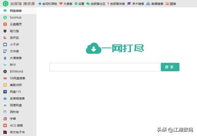 虫部落是一个网站聚合导航的网站,除了搜资源,它还有设计搜、数据搜、快搜等等分类,所有的网站加起来近百个了。在搜资源方面,它提供了不少有名的资源网站,包括前面提到的磁力猫和茶杯狐,还有资源十分丰富的西林街等。