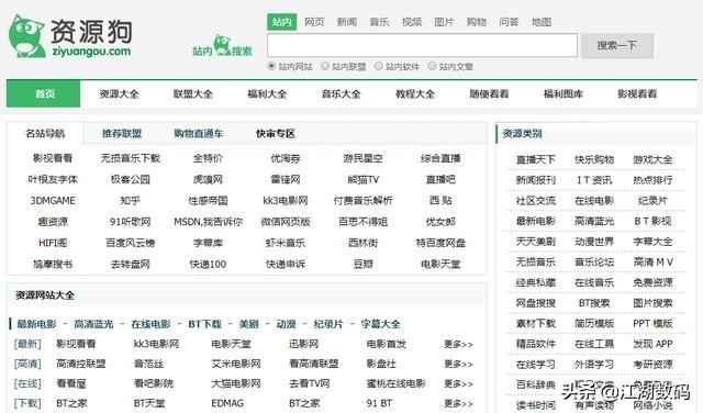 资源狗本身就是一个大大的资源库,但是它最大的作用不是用来搜资源,而是用来找能找到资源的网站(有点绕口)。在这里你能看到许多大名鼎鼎的资源网站,像是电影天堂、迅影网、BT之家……货真价实的一个顶百个资源网站。
