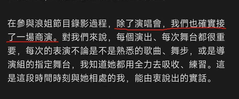 别人在训练室为了团队练舞练到半夜,她回台湾没日没夜彩排私人商演。