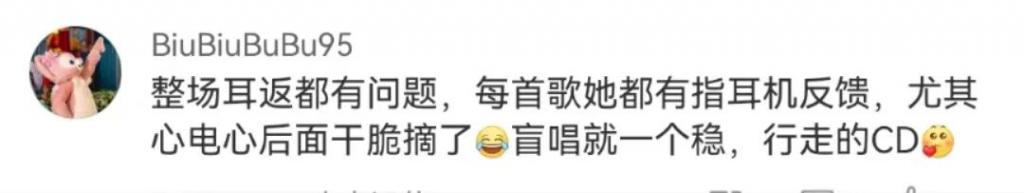 据听过现场的观众反应,王心凌不止唱一首歌耳返出问题,而是整场演出耳返都有问题,每首歌她都有指耳机反馈。