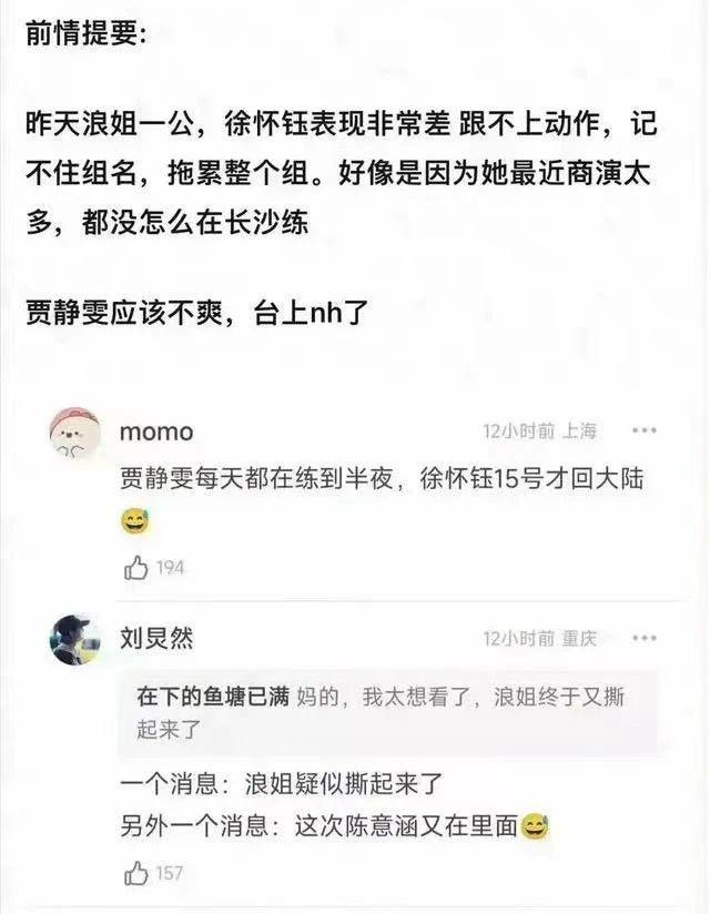 当时有网友现场看完浪姐表演,就说徐怀钰在舞台上表演划水,还因此惹怒了组长贾静雯。