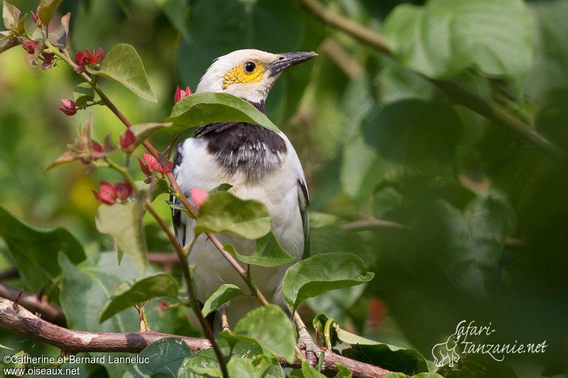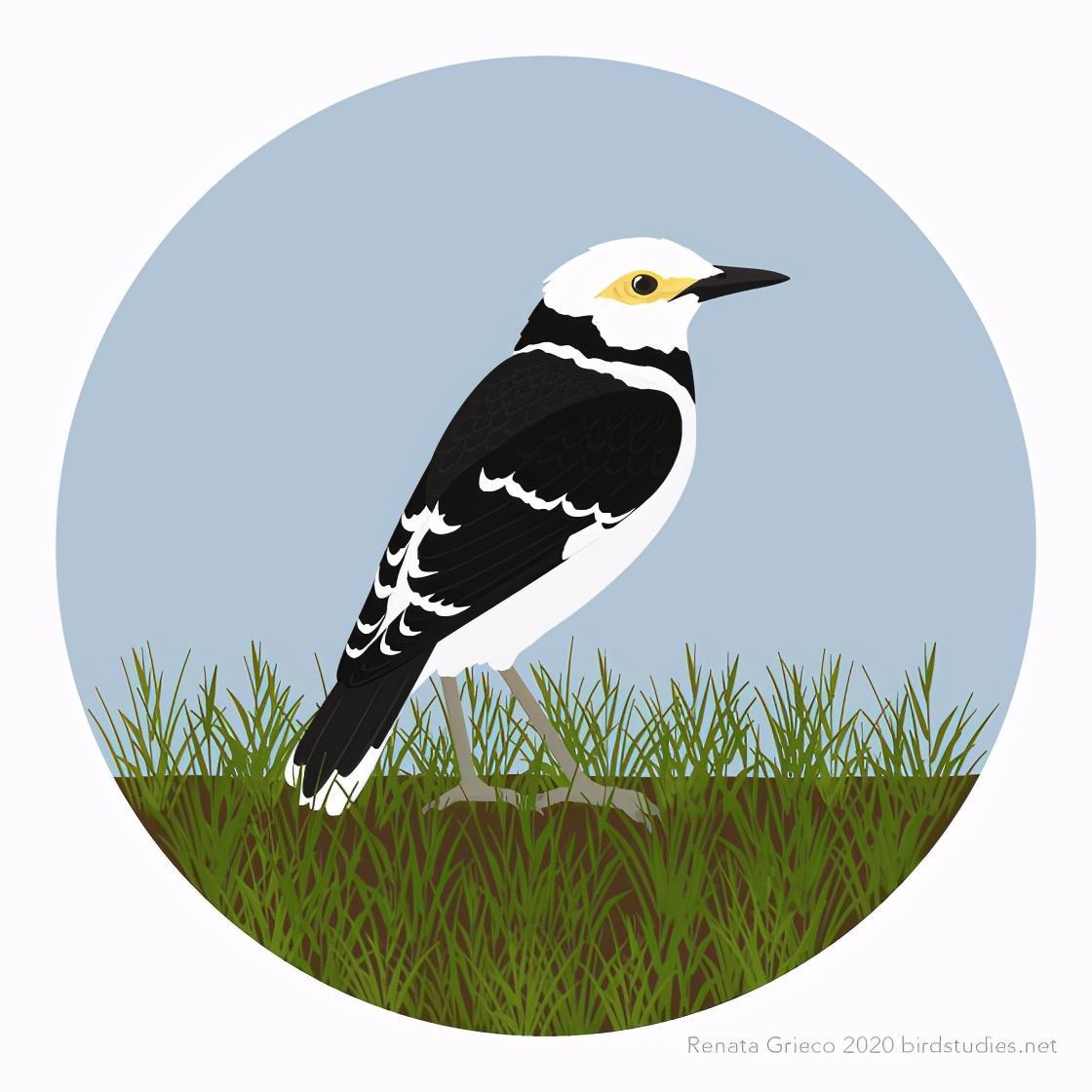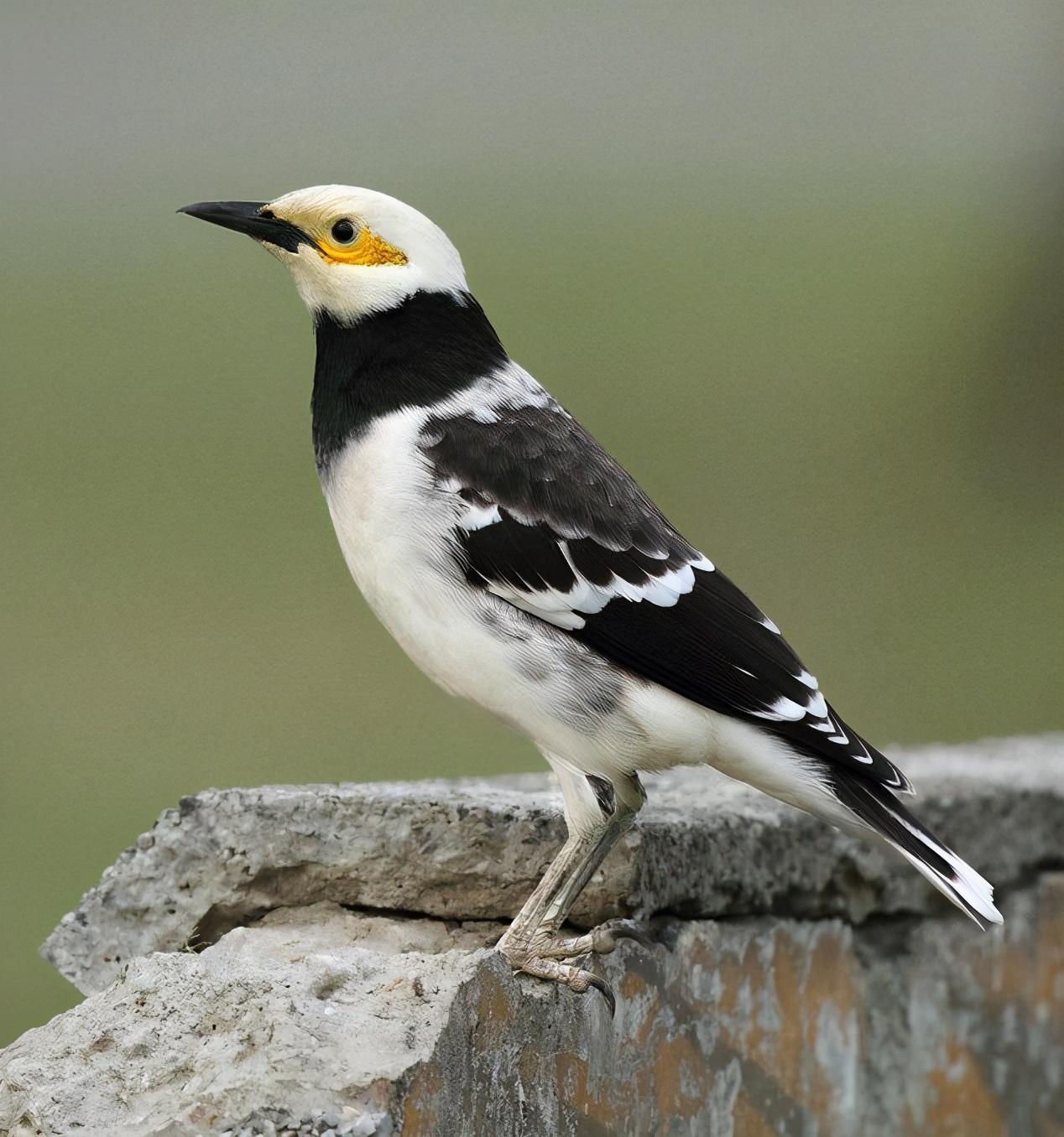 黑领椋鸟是一种非常好辨认的鸟类。它们有着白色的头部,腹部和尾羽;背部飞羽为棕黑色,越往外侧羽毛越白;喙为黑色。它们有着两个非常有特色的地方,其一就是有着黑色的领子,所以被称为黑领椋鸟。其二就是它们的眼睛周围为黄色,仿佛眼里带着黄金,眼角呈矢状。