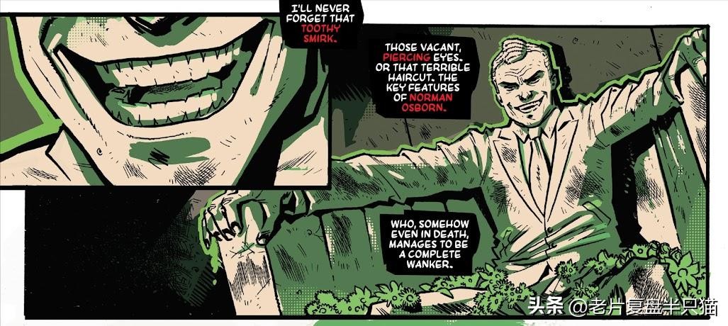 在他的宇宙,有个叫那林 奥贝奥依的Nalin Oberoi的大佬,也是他宇宙里的奥斯本,企图通过一场召唤仪式,获得无穷的力量,结果他变成了自己都无法控制的绿色妖怪。