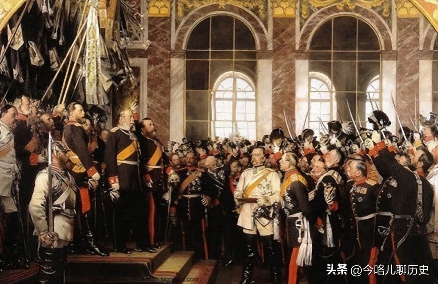 1871年1月18日,普鲁士国王威廉一世在法国凡尔赛宫加冕为皇帝,成立了德意志帝国。