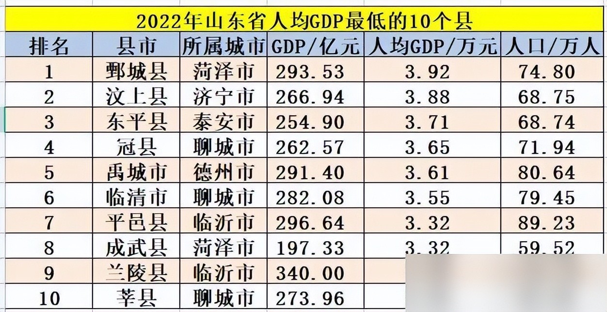 山东省落后的10个县!聊城3个县上榜,菏泽2个县入围,莘县垫底