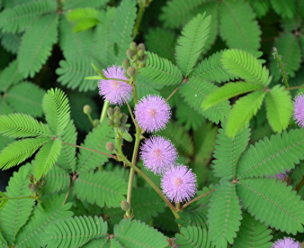 首先给大家介绍的第一种草就是含羞草,大家一听含羞草肯定就特别的兴奋,因为这是一种特别好玩的草,你一碰它,它就会合拢。