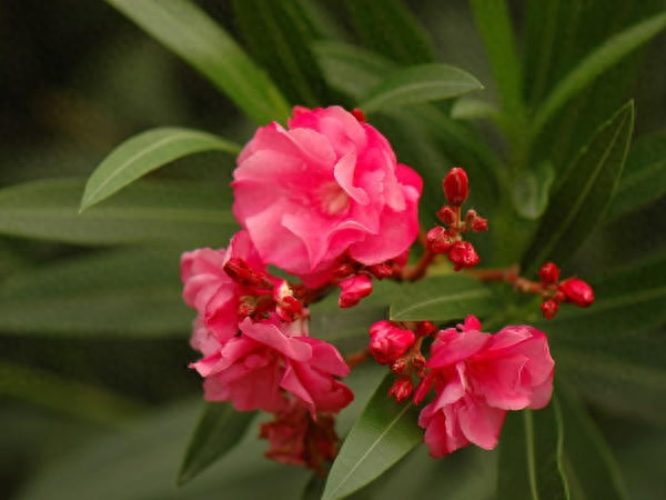 第二种要给大家介绍的就是夹竹桃,我们经常会在马路边碰到它,因为它经常被作为一种观赏性的植物栽在马路边,而且它开花的量是特别大的,花期比较长,所以栽在马路上还是非常养眼的,但是它全身都是有毒性的,包括它的叶,它的花,甚至它的根都是有毒性的,正是因为它们全身上下都有毒性,所以根本不会遭到病虫害,用来做城市绿化就再好不过了。