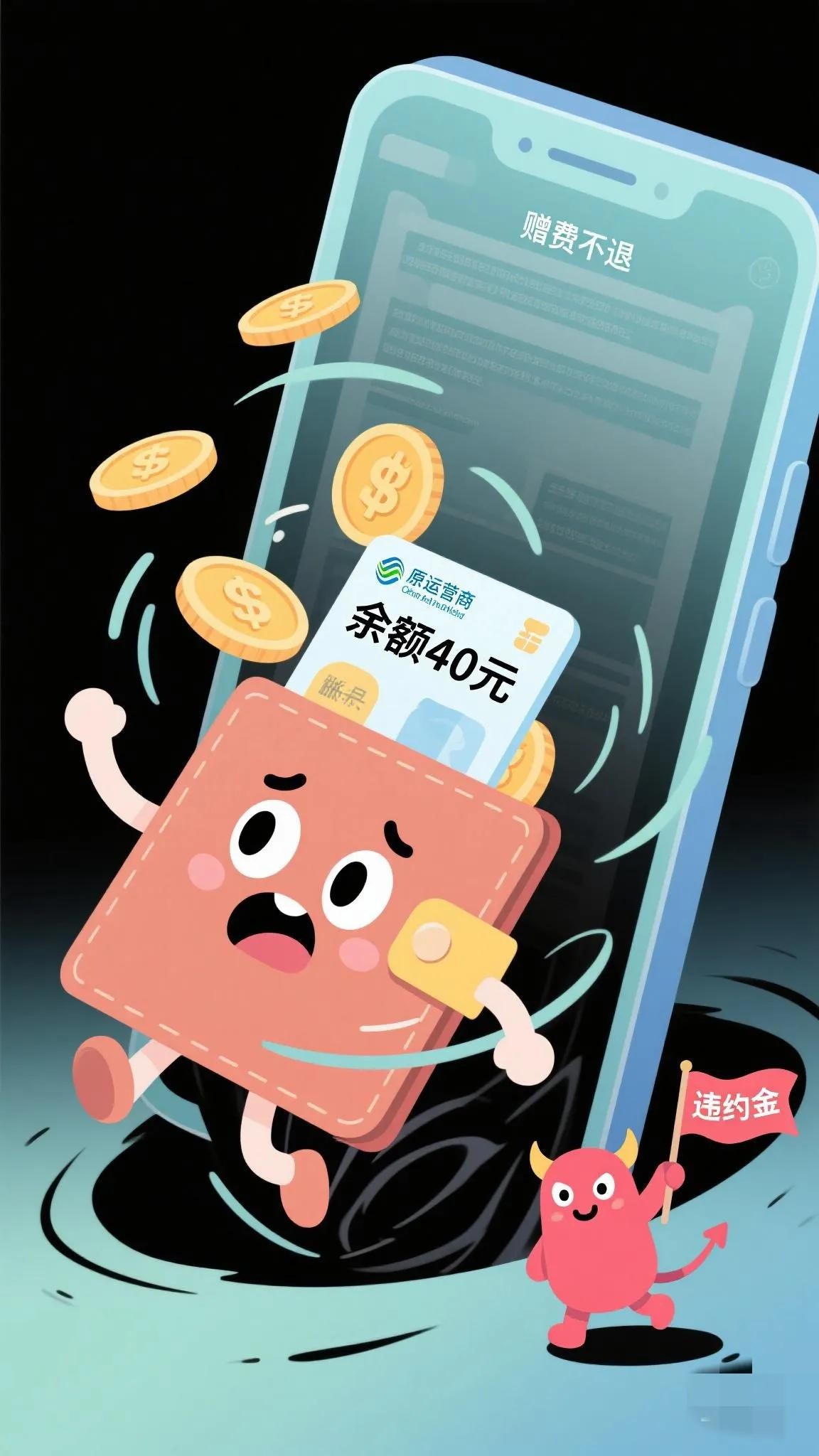 赠费变“赠刀”:用户小李转网时,原运营商称“账户有50元赠费”,结果退费时被告知“赠费不退”。一查才发现,这50元是“合约赠款”,必须用满2年才能退,否则直接清零 。
